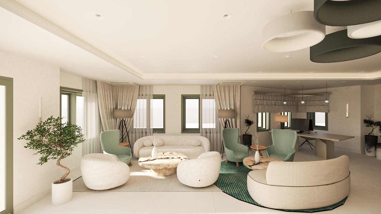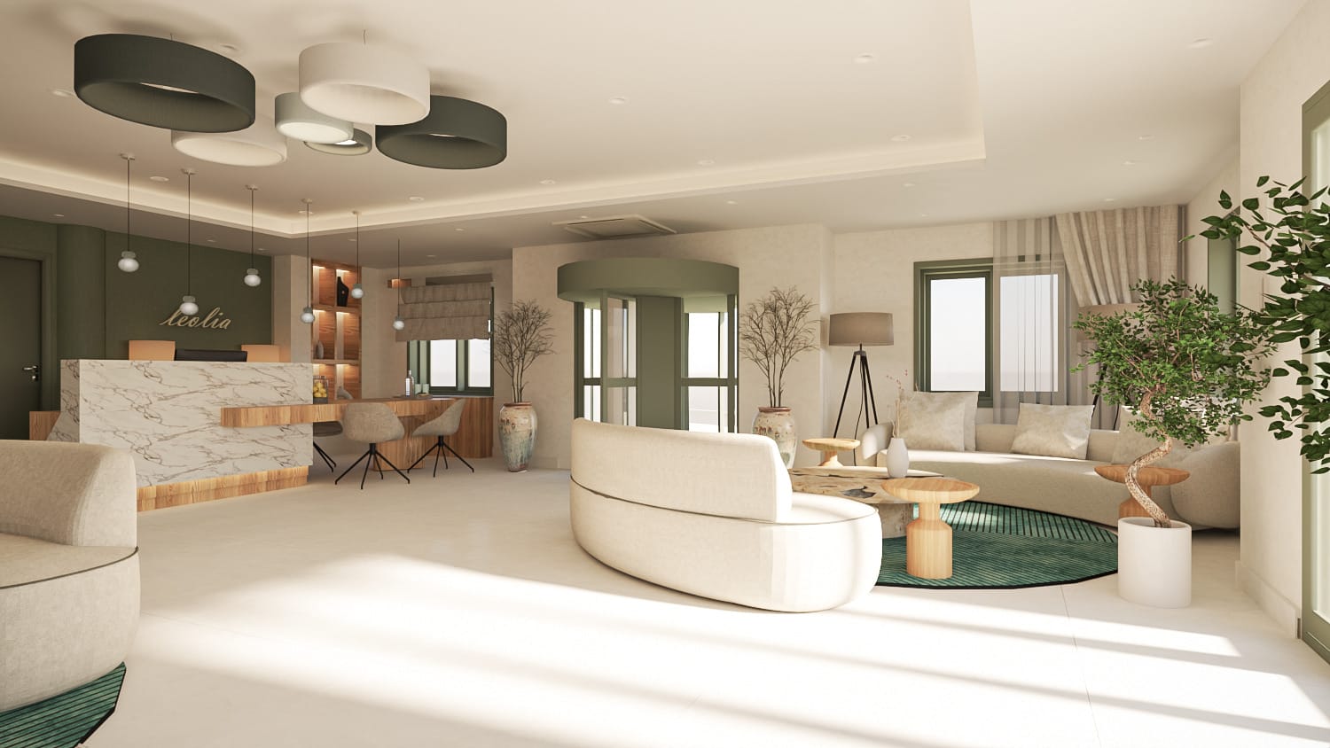 Οι κοινόχρηστοι χώροι είναι προσεκτικά σχεδιασμένοι ώστε να ενισχύουν την αίσθηση πολυτέλειας και να ενθαρρύνουν την κοινωνική αλληλεπίδραση, προσφέροντας ένα κομψό σκηνικό για αξέχαστες στιγμές. Αυτοί οι χώροι λειτουργούν ως κόμβος σύνδεσης, συνδυάζοντας υψηλή αισθητική με μια ζεστή και φιλική ατμόσφαιρα που παροτρύνει τους επισκέπτες να βυθιστούν στον πλούτο της τοπικής ζωής και των κοινών εμπειριών.