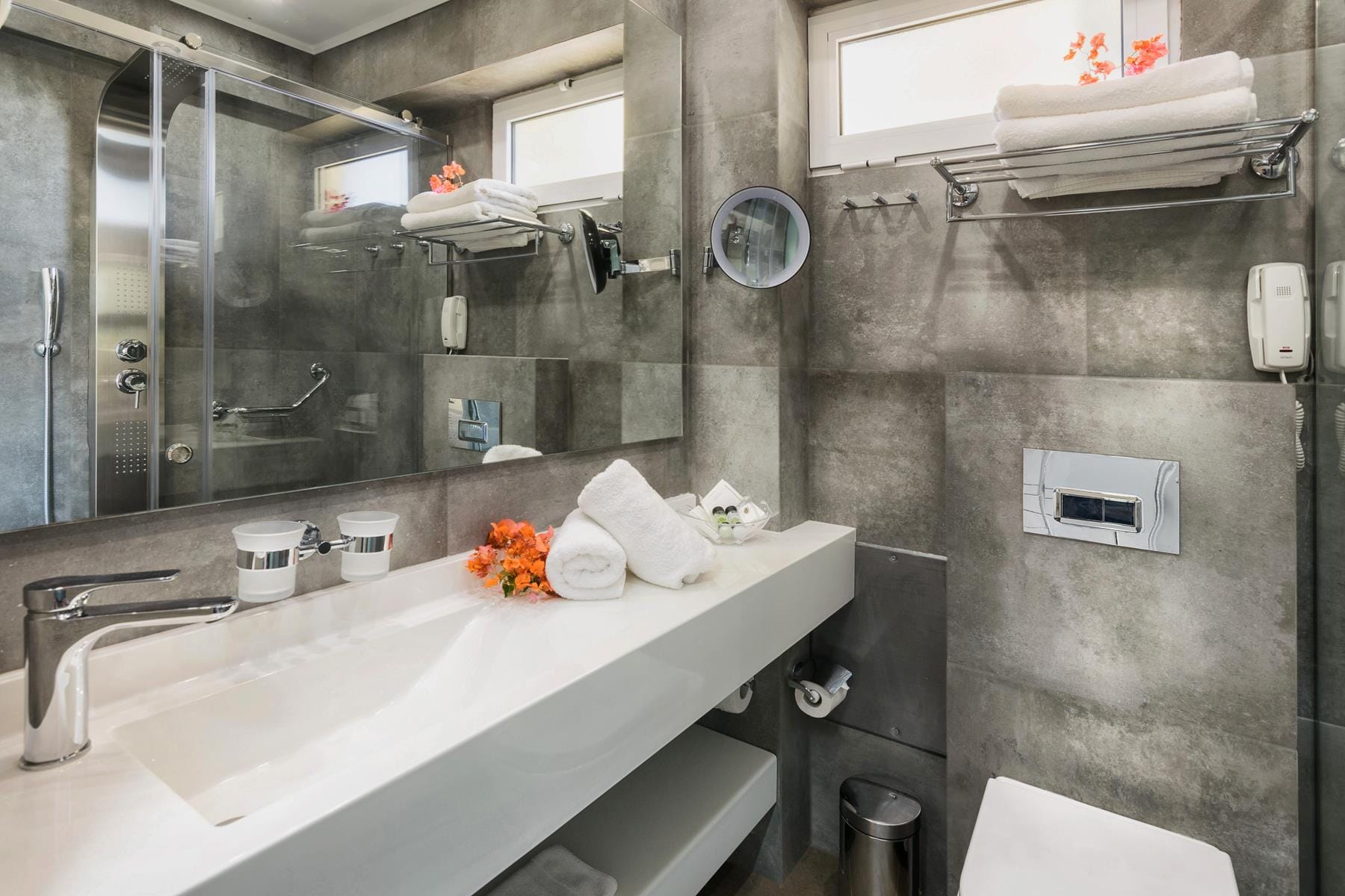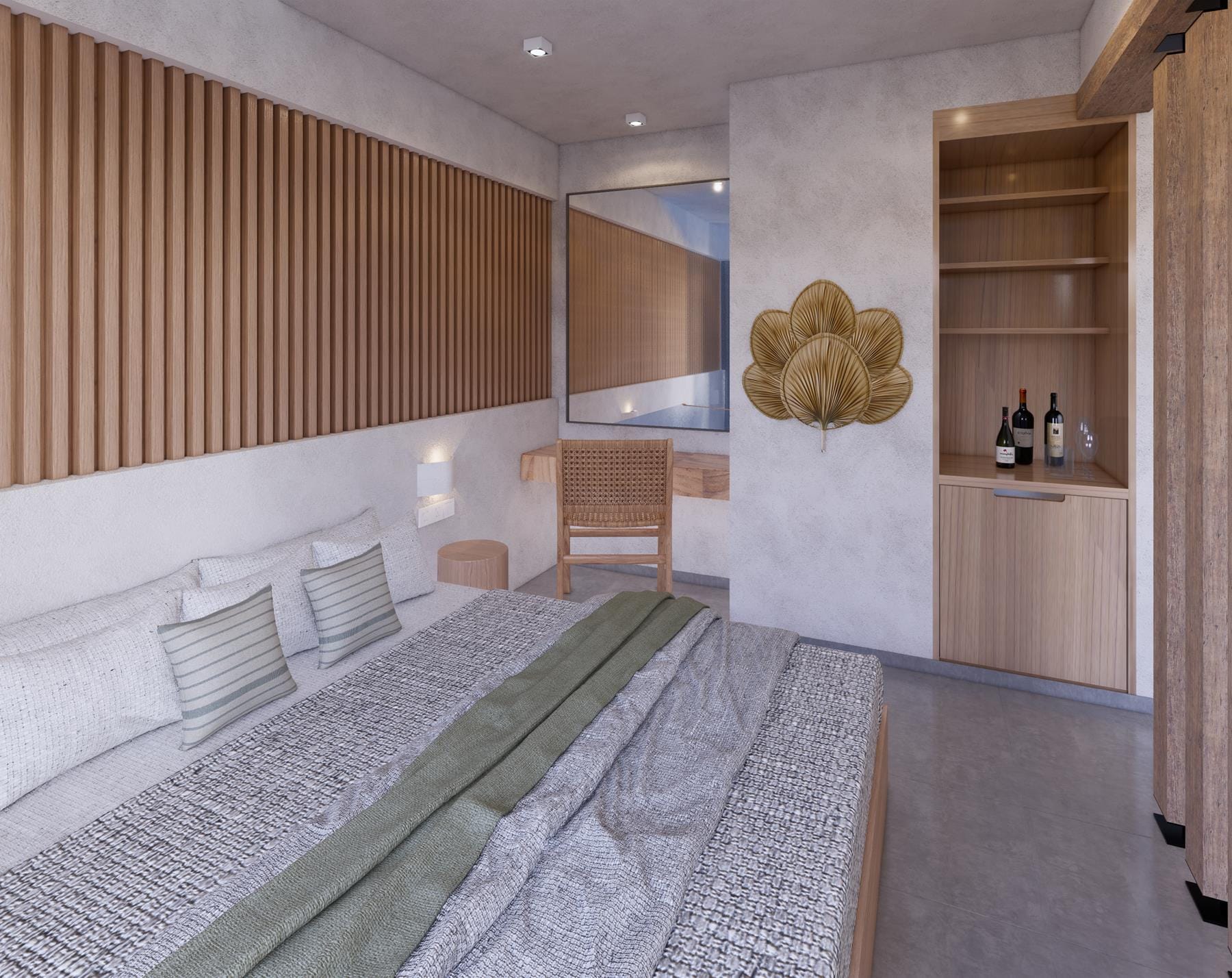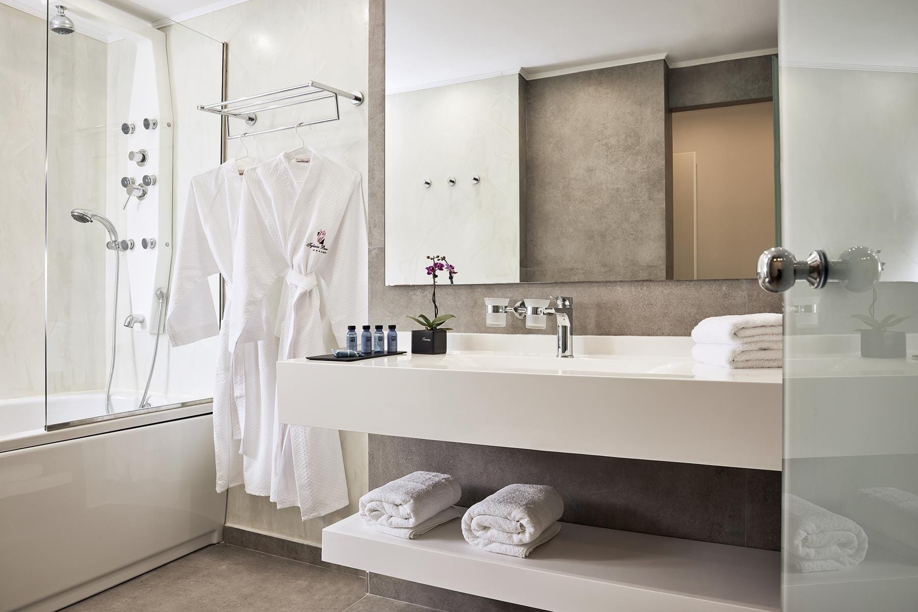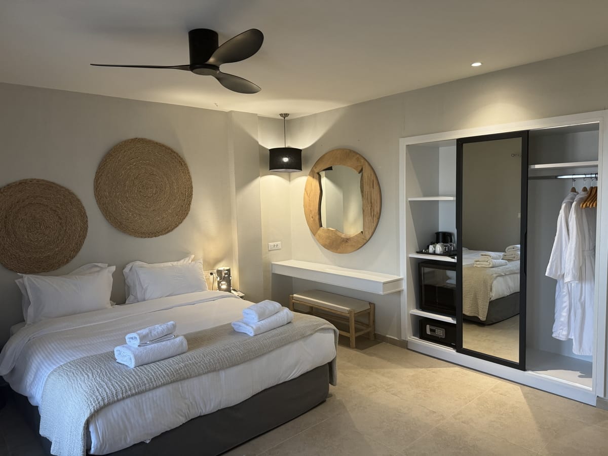 Κάθε ένα από 70 πολυτελή κλιματιζόμενα δωμάτια, διαθέτει επιπλωμένο μπαλκόνι με εκθαμβωτική θέα στη θάλασσα, ή την πισίνα, ή τον κήπο. Τα δωμάτια είναι εξοπλισμένα με επίπεδη δορυφορική τηλεόραση, ορθοπεδικό στρώμα και στήλη ντούζ με υδρομασάζ, ηλεκτρικό χρηματοκιβώτιο (δωρεάν) και έναν μεγενθυντικό καθρέπτη. Δωρεάν wi-fi είναι διαθέσιμο σε όλο το ξενοδοχείο. Μηχανή Espresso στα δωμάτια Sunshine, οικολογικά συστήματα εξοικονόμησης ενέργειας, ανοξείδωτη αναδιπλούμενη απλώστρα στα μπαλκόνια, ορθοπεδικά κρεβάτια, μπουρνούζια και παντόφλες στα δωμάτια sunshine και cozy. Υπηρεσία προετοιμασίας κρεβατιού στο cozy, και ακόμα περισσότερες ευχάριστες εκπλήξεις.