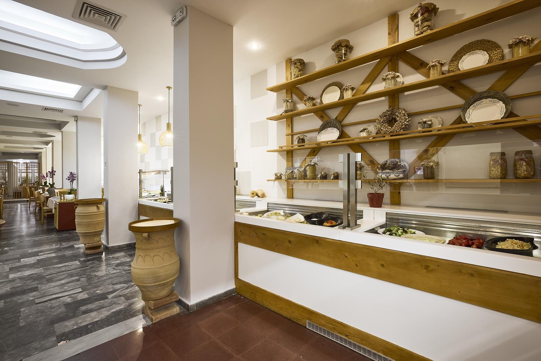Ξεκινήστε τη μέρα σας με Ευρωπαϊκό και Ελληνικό μπουφέ πρωινού καθημερινά στο κεντρικό εστιατόριο, το οποίο επίσης προσφέρει μια ποικιλία με Ελληνικά, Κρητικά και διεθνή πιάτα για μεσημεριανό και δείπνο. Το ξενοδοχείο είναι ιδανικό για αυτούς που ψάχνουν να αποφορτιστούν και να χαλαρώσουν, με οργανωμένες βραδιές ελληνικής και κρητικής ψυχαγωγίας για μια γεύση από την τοπική κουλτούρα.